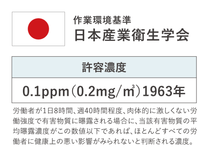 レギュレーションについて - 日本・米国では、オゾンの人体への影響を考慮した環境基準が設定されています。弊社では、この基準を順守し、お客様の安全の確保に努めています。